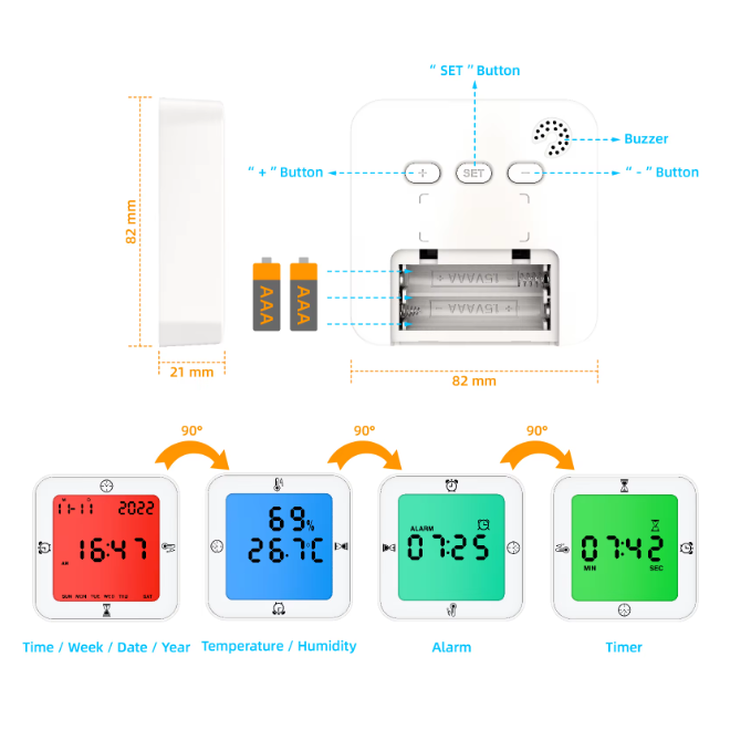 Note: After the product is turned 90°, it switches to the next mode, and the backlight only lasts for 5 seconds.